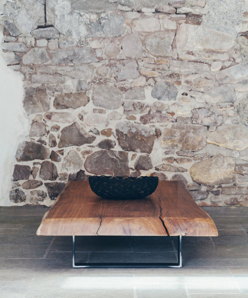 La forme originelle du tronc imposera la conduite à suivre, le piètement acier va alléger la silhouette dans un harmonie exceptionnel, durable et chargé d'histoire.