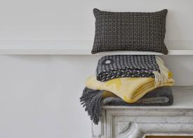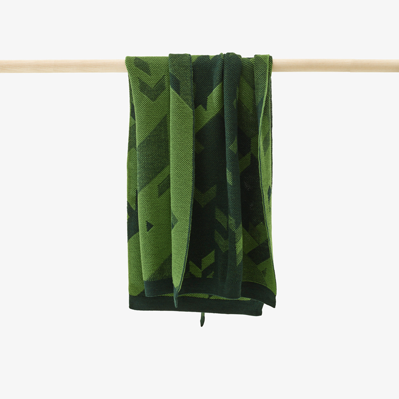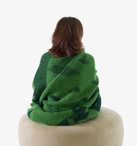 Dimensions : 150 x 170 cm plaid tricot 100 % laine.