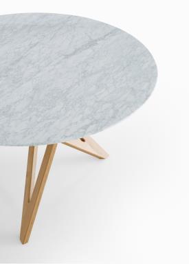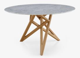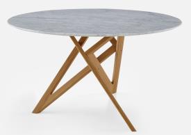 Cette table accueille 6 couverts. Pieds en chêne massif. Plateau en marbre de Carrare (épaisseur 20 mm) protégé d'un vernis polyester.