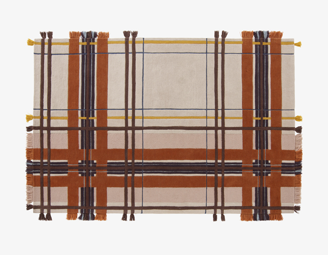 Cinna Design. Constance Frapolli - Tapis, à partir de 1152 € Dimensions : 300 x 200 cm Fergus se réfère au nom Fergusson qui a pris vie dans de nombreuses régions d'Ecosse. Le nom Fergus en gaélique signifie en colère, audacieux et fier. Le clan Ferguson a contribué à populariser le tartan. Le tartan est une étoffe de laine à carreaux de couleurs, typique des peuples celtes. Il s'agit d'un motif de lignes horizontales et verticales entrecroisées, de multiples couleurs. Les tartans étaient à l'origine réservés aux tissus, mais sont maintenant utilisés sur de nombreux autres matériaux. Les kilts écossais sont ainsi quasiment toujours réalisés dans un tissu à motif de tartan. Tapis 100 % laine tufté main (bouclette sur certaines parties / tufté rasé sur d'autres). Les franges sont seulement dans la continuité des lignes du motif. Peu d’équivalences coloris dans les colliers de pompons. La longueur des franges est de 8 cm ce qui donne des dimensions hors-tout de 216 cm x 316 cm. tapis