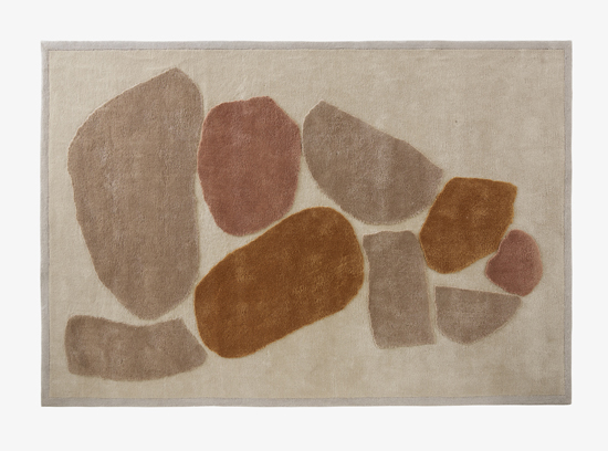 tapis tufté main, 75 % laine de Nouvelle Zélande, 25 % bambou. Motifs avec différentes hauteurs de tuft 8, 13 et 23 mm. Pas d’équivalence coloris.