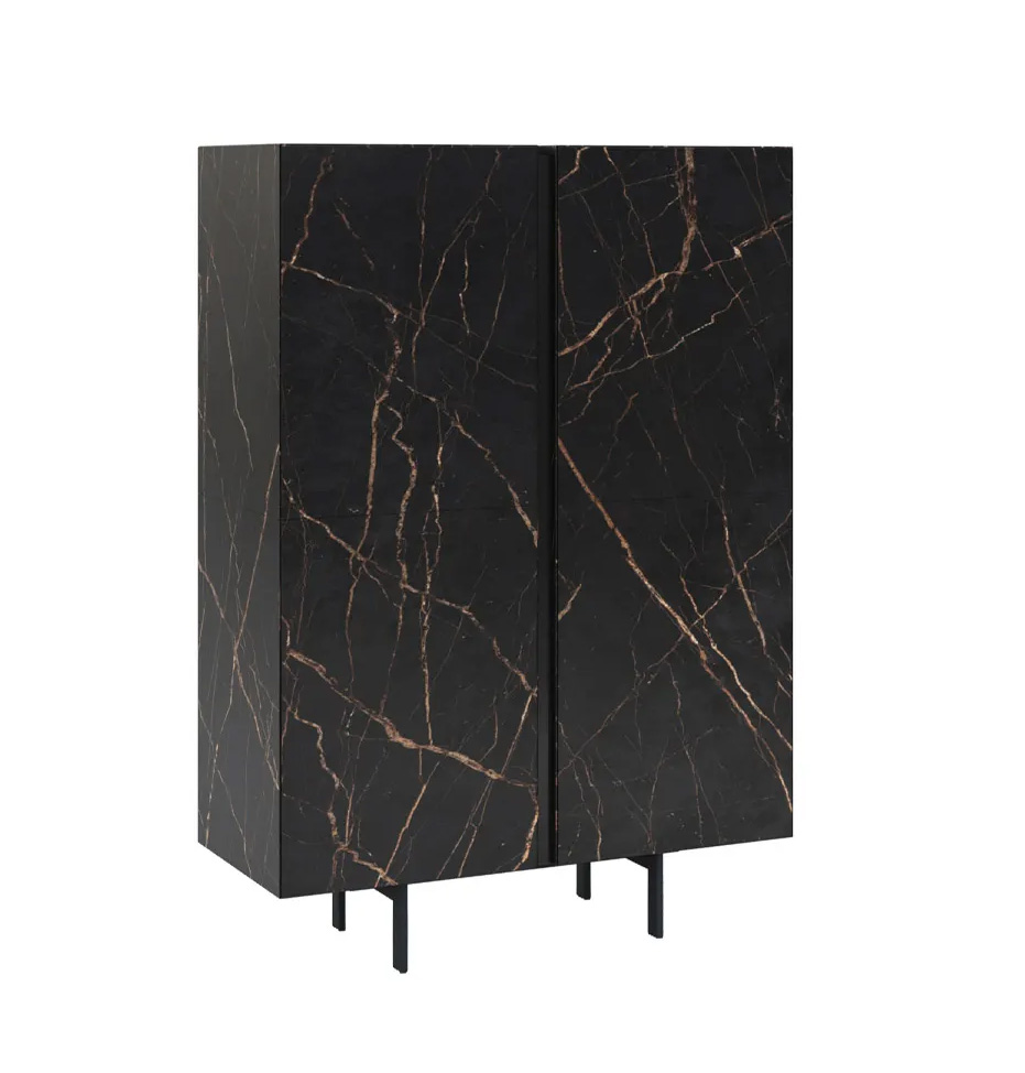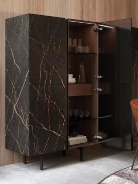 Design. Sergio Rochas Dimensions : h 170 cm buffet haut avec pied en métal. Sa hauteur totale est de 170 cm.