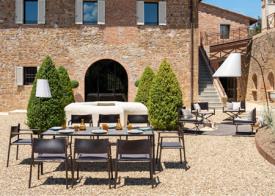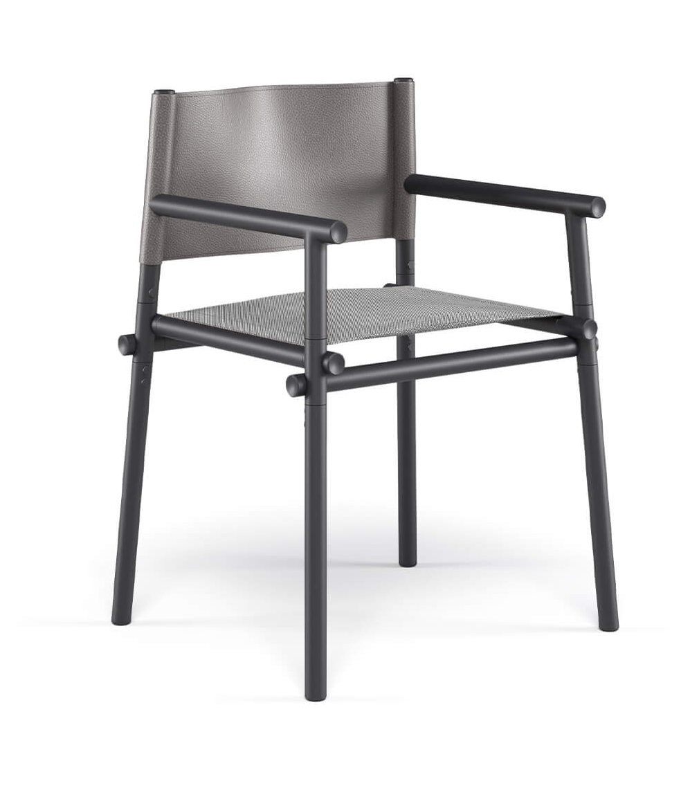 Emu Réf. 728 - Designer: Chiaramonte / Marin Dimensions : l 61 x h 79 x p 53 cm Une collection idéale pour meubler avec personnalité les espaces contract hospitality et privés, aussi bien à l'intérieur qu'à l'extérieur. Material: Aluminium - Eco-cuir - Emu-tex Collection: Terramare Poids: 4.80 Kg fauteuil