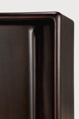 Ethnicraft Design. Alain van Havre - Buffet Flow à partir de 2099 € Dimensions : l 224 x h 82 x p 45 cm La collection Flow dégage une impression de mouvement grâce à ses bords effilés et à ses lignes fluides. Dotée de coins légèrement arrondis et de courbes subtiles sur toute son étendue, chaque pièce distille un esprit vintage avec une approche moderne et raffinée, taillée pour s'adapter à des espaces et à des besoins en constante évolution. Le généreux plateau du buffet et les étagères intérieures offrent un espace de rangement pratique et visuellement attrayant. Fabriqué en acajou massif avec une finition teintée et vernie qui sublime le grain naturel du bois, il repose sur des pieds distinctifs qui confèrent une stature légère et aérienne à ce classique fonctionnel. Le buffet Flow est doté de 2 portes coulissantes et d'une étagère intérieure ajustable. Fabriqué en acajou teinté brun rose et verni.