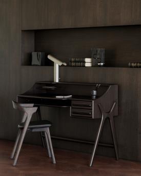 La collection Flow dégage une impression de mouvement grâce à ses bords effilés et à ses lignes fluides. Dotée de coins légèrement arrondis et de courbes subtiles sur toute son étendue, chaque pièce distille un esprit vintage avec une approche moderne et raffinée, taillée pour s'adapter à des espaces et à des besoins en constante évolution. Conçu pour favoriser concentration et fluidité, ce bureau aux lignes épurées et à la finition noble confère une chaleur unique à l'espace de travail. Fabriqué en acajou massif avec une finition vernie, sa surface de travail tactile et sa base ouverte créent un cadre qui invite à la créativité comme à la productivité.