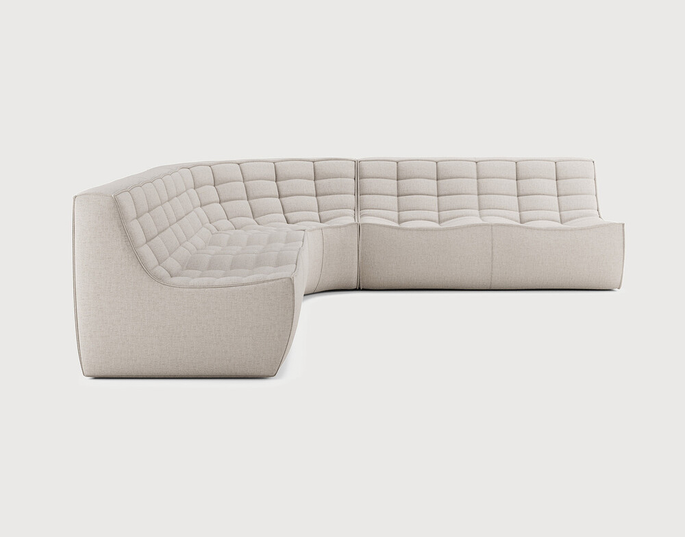 Composition canapé gauche : 2 modules 2 places + module d'angle arrondi à 90°. Des connecteurs inclus pour relier les modules du canapé.
