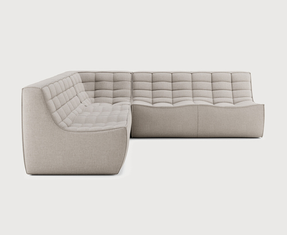 Ethnicraft Design. Jacques Deneef - Canapé modulaire N701 à partir de 4977 € Dimensions : l 231 x h 76 x p 231 cm Le canapé N701 offre un design chaleureux qui respire le confort et la détente. En combinant les modules aux dimensions variées, vous avez une infinité de possibilités dès lors qu'il s'agit de créer votre propre style d'intérieur. Conçu par Jacques Deneef, il est disponible en plusieurs couleurs et matières avec des options pré-configurées ou entièrement personnalisable. Composition canapé gauche : 2 modules 2 places + module d'angle carré à 90°. Des connecteurs inclus pour relier les modules du canapé. Tissu réalisé à partir de coton recyclé avec des fibres supplémentaires pour des performances techniques. canapé modulaire