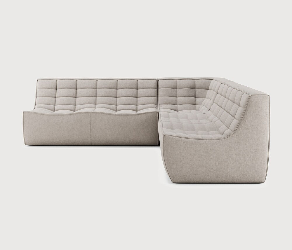 Ethnicraft Design. Jacques Deneef - Canapé modulaire N701 à partir de 4977 € Dimensions : l 260 x h 76 x p 260 cm Le canapé N701 offre un design chaleureux qui respire le confort et la détente. En combinant les modules aux dimensions variées, vous avez une infinité de possibilités dès lors qu'il s'agit de créer votre propre style d'intérieur. Conçu par Jacques Deneef, il est disponible en plusieurs couleurs et matières avec des options pré-configurées ou entièrement personnalisable. Composition canapé droit : 2 modules 2 places + module d'angle carré à 90°. Des connecteurs inclus pour relier les modules du canapé. Tissu réalisé à partir de coton recyclé avec des fibres supplémentaires pour des performances techniques. canapé modulaire