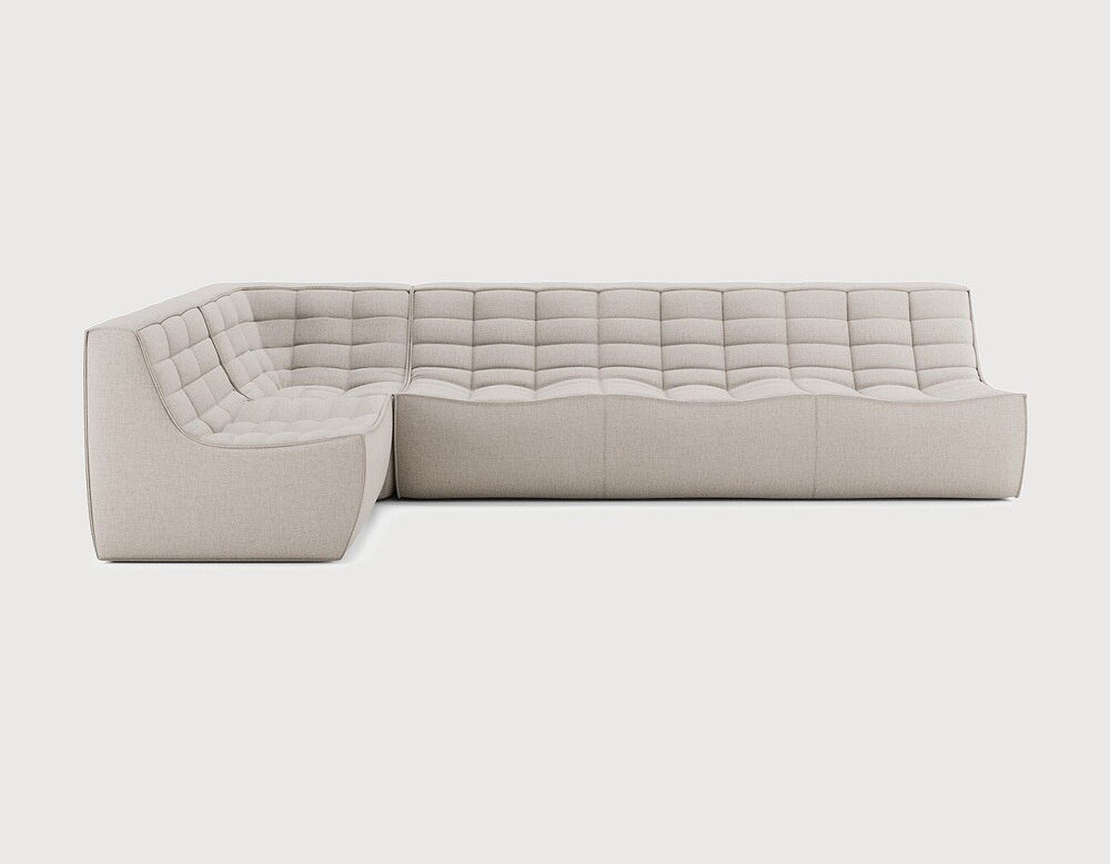 Ethnicraft Design. Jacques Deneef - Canapé modulaire N701 à partir de 4717 € Dimensions : l 301 x h 76 x p 171 cm Le canapé N701 offre un design chaleureux qui respire le confort et la détente. En combinant les modules aux dimensions variées, vous avez une infinité de possibilités dès lors qu'il s'agit de créer votre propre style d'intérieur. Conçu par Jacques Deneef, il est disponible en plusieurs couleurs et matières avec des options pré-configurées ou entièrement personnalisable. Composition canapé gauche : module 1 place + module d'angle carré à 90° + module 3 places. Des connecteurs inclus pour relier les modules du canapé. canapé modulaire
