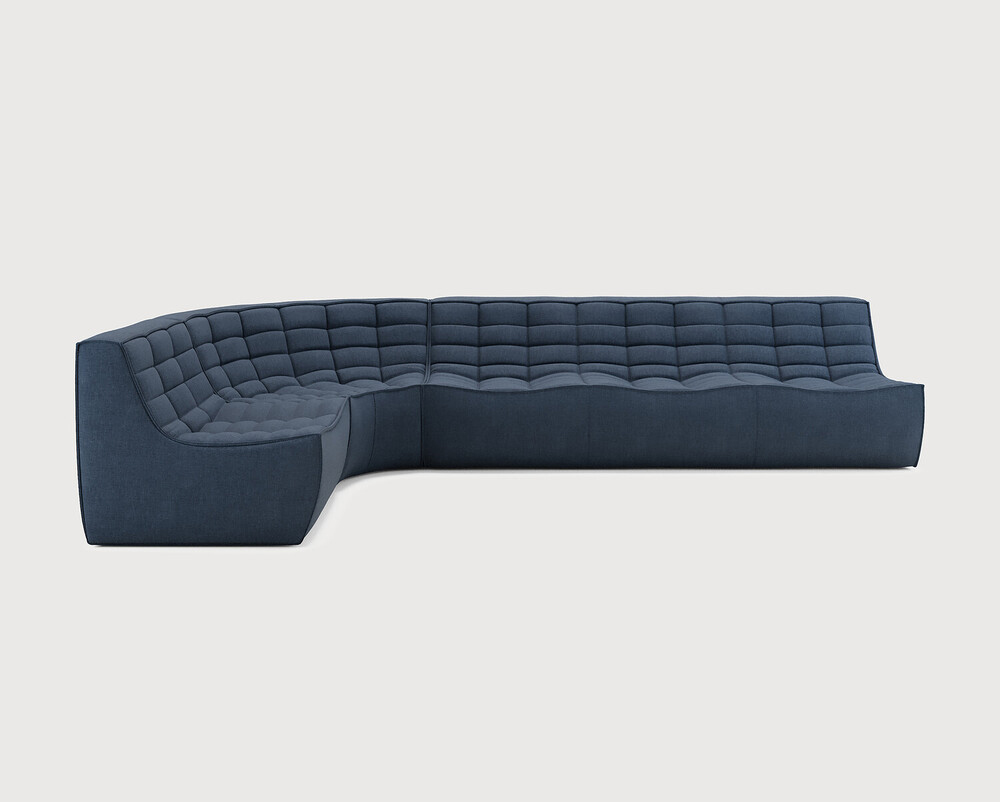 Ethnicraft Design. Jacques Deneef - Canapé modulaire N701 à partir de 5557 € Dimensions : l 330 x h 76 x p 200 cm Le canapé N701 offre un design chaleureux qui respire le confort et la détente. En combinant les modules aux dimensions variées, vous avez une infinité de possibilités dès lors qu'il s'agit de créer votre propre style d'intérieur. Conçu par Jacques Deneef, il est disponible en plusieurs couleurs et matières avec des options pré-configurées ou entièrement personnalisable. Composition canapé gauche : module 1 place + module d'angle carré à 90° + module 3 places. Des connecteurs inclus pour relier les modules du canapé. Tissu réalisé à partir de coton recyclé avec des fibres supplémentaires pour des performances techniques. canapé modulaire