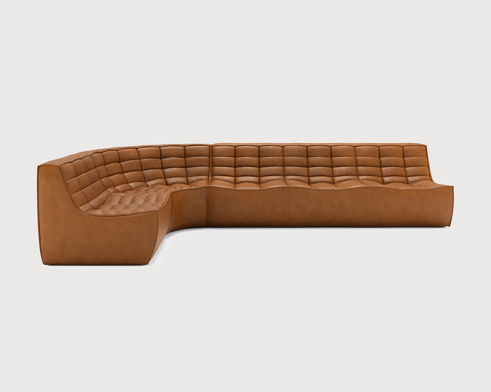 Ethnicraft Design. Jacques Deneef - Canapé modulaire N701 à partir de 8027 € Dimensions : l 330 x h 76 x p 200 cm Le canapé N701 offre un design chaleureux qui respire le confort et la détente. En combinant les modules aux dimensions variées, vous avez une infinité de possibilités dès lors qu'il s'agit de créer votre propre style d'intérieur. Conçu par Jacques Deneef, il est disponible en plusieurs couleurs et matières avec des options pré-configurées ou entièrement personnalisable. Composition canapé gauche : module 1 place + module d'angle carré à 90° + module 3 places. Des connecteurs inclus pour relier les modules du canapé. 100% cuir aniline. Des variations de couleur peuvent se produire. canapé modulaire