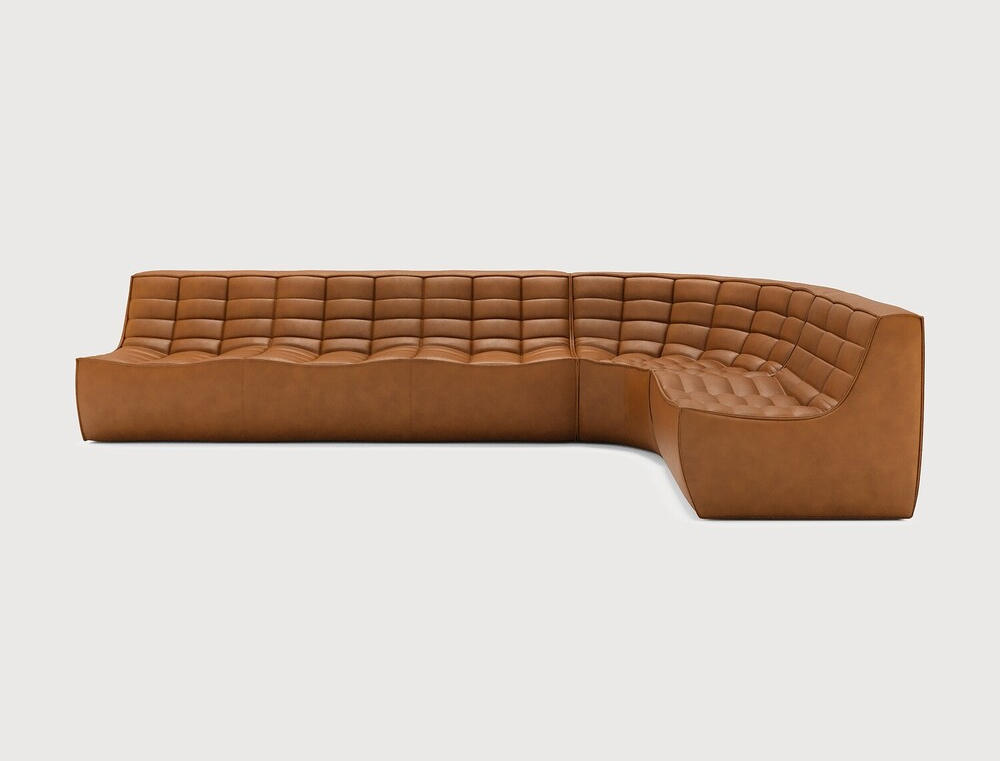 Ethnicraft Design. Jacques Deneef - Canapé modulaire N701 à partir de 8027 € Dimensions : l 330 x h 76 x p 200 cm Le canapé N701 offre un design chaleureux qui respire le confort et la détente. En combinant les modules aux dimensions variées, vous avez une infinité de possibilités dès lors qu'il s'agit de créer votre propre style d'intérieur. Conçu par Jacques Deneef, il est disponible en plusieurs couleurs et matières avec des options pré-configurées ou entièrement personnalisable. Composition canapé droit : module 3 places + module d'angle carré à 90° + module 1 place. Des connecteurs inclus pour relier les modules du canapé. 100% cuir aniline. Des variations de couleur peuvent se produire. canapé modulaire
