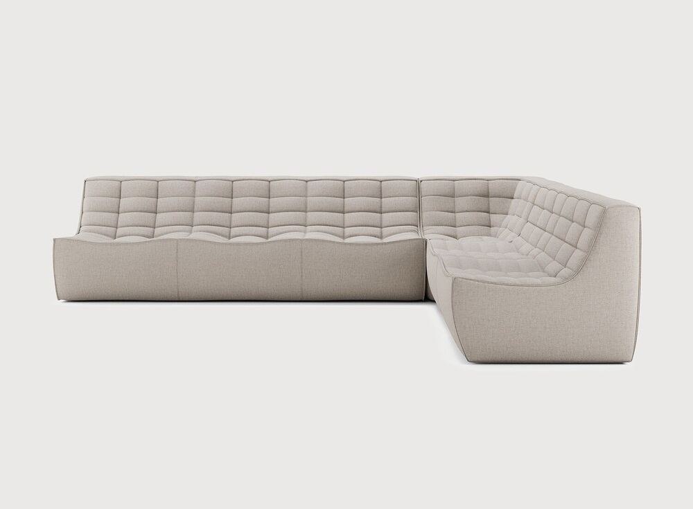 Ethnicraft Design. Jacques Deneef - Canapé modulaire N701 à partir de 5187 € Dimensions : l 301 x h 76 x p 231 cm Le canapé N701 offre un design chaleureux qui respire le confort et la détente. En combinant les modules aux dimensions variées, vous avez une infinité de possibilités dès lors qu'il s'agit de créer votre propre style d'intérieur. Conçu par Jacques Deneef, il est disponible en plusieurs couleurs et matières avec des options pré-configurées ou entièrement personnalisable. Composition canapé droit : module 3 places + module d'angle carré à 90° + module 2 places. Des connecteurs inclus pour relier les modules du canapé. canapé modulaire
