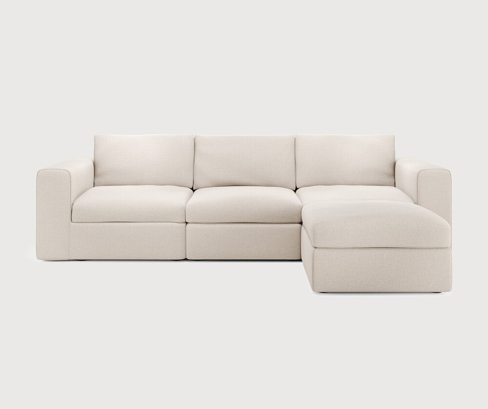 Ethnicraft Canapé modulaire Mellow à partir de 5866 € Dimensions : l 286 x h 63 x p 183 cm Composition canapé droit : module d'extrémité avec accoudoir en L + module 1 place + accoudoir d'extrémité avec accoudoir en R + repose-pied. Tissu réalisé à partir de coton recyclé avec des fibres supplémentaires pour des performances techniques. Des connecteurs inclus pour relier les modules du canapé. Tissu réalisé à partir de coton recyclé avec des fibres supplémentaires pour des performances techniques. canapé modulaire
