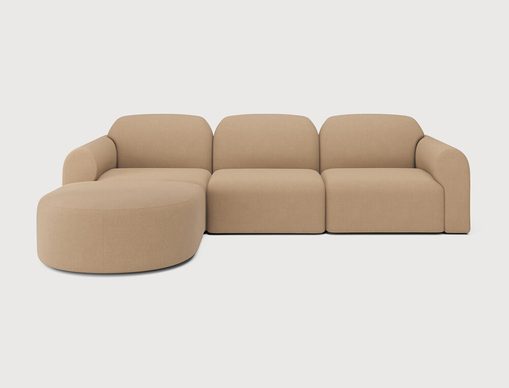 Ethnicraft Canapé modulaire Bulky à partir de 3746 € Dimensions : l 270 x h 75 x p 190 cm Le modèle Bulky célèbre la simplicité et la polyvalence de façon harmonieuse. Son design monovolume nuancé par des angles arrondis et souligné par des coutures discrètes confère une élégance sobre à n'importe quelle pièce. Sa silhouette épurée se conjugue à une garniture luxueuse et des contours élaborés pour offrir un confort durable. Que ce soit dans un espace réduit ou un salon spacieux, les éléments modulables du canapé Bulky peuvent être disposés de façon créative pour répondre à vos besoins. Faites votre choix parmi les options préconfigurées ou personnalisez votre installation pour un style unique. Composition canapé gauche : module 1 place + module d'extrémité avec accoudoir en L + module d'extrémité avec accoudoir en R + repose-pied semi-circulaire. canapé modulaire