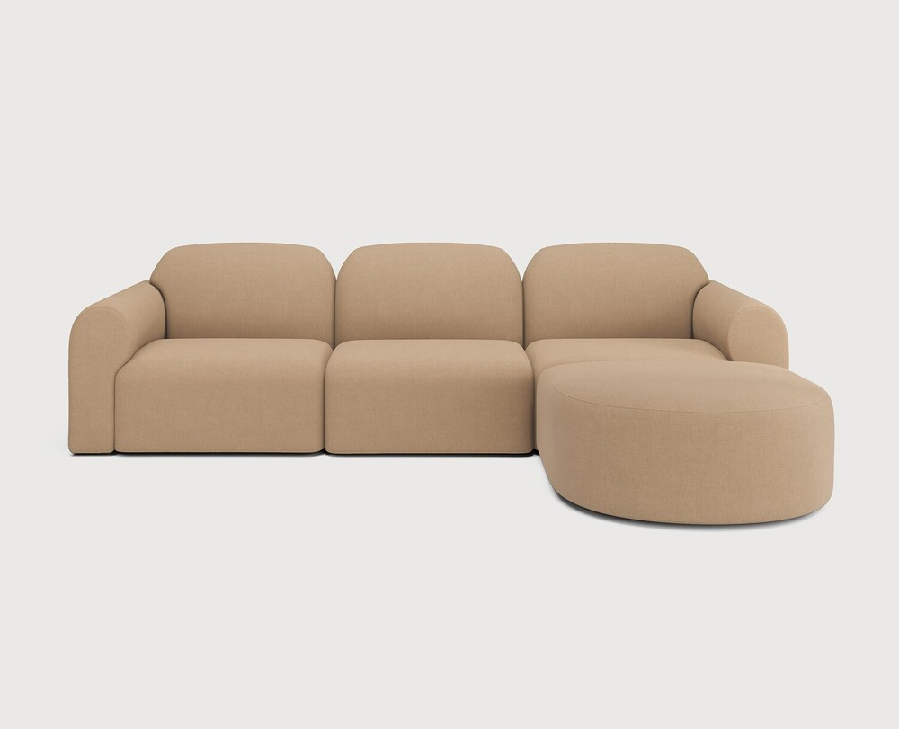 Ethnicraft Canapé modulaire Bulky à partir de 3746 € Dimensions : l 270 x h 75 x p 190 cm Le modèle Bulky célèbre la simplicité et la polyvalence de façon harmonieuse. Son design monovolume nuancé par des angles arrondis et souligné par des coutures discrètes confère une élégance sobre à n'importe quelle pièce. Sa silhouette épurée se conjugue à une garniture luxueuse et des contours élaborés pour offrir un confort durable. Que ce soit dans un espace réduit ou un salon spacieux, les éléments modulables du canapé Bulky peuvent être disposés de façon créative pour répondre à vos besoins. Faites votre choix parmi les options préconfigurées ou personnalisez votre installation pour un style unique. Composition canapé droit : module 1 place + module d'extrémité avec accoudoir en L + module d'extrémité avec accoudoir en R + repose-pied semi-circulaire. canapé modulaire