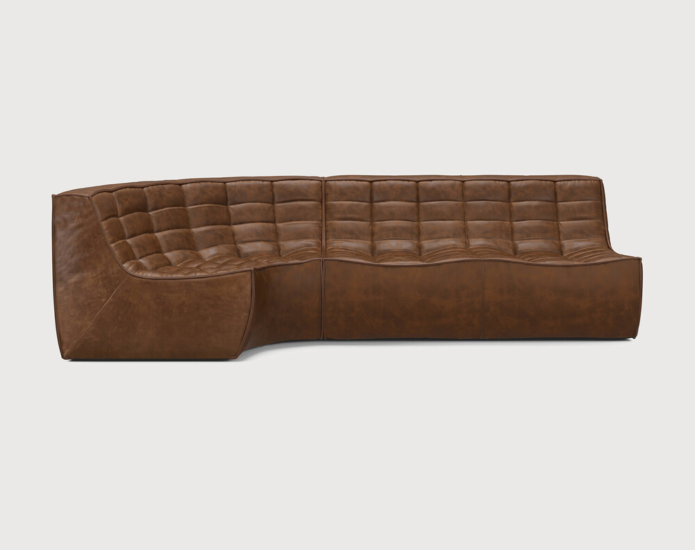 Composition canapé gauche : module 2 places + module d'angle arrondi à 90°. Des connecteurs pour relier les modules sont inclus.