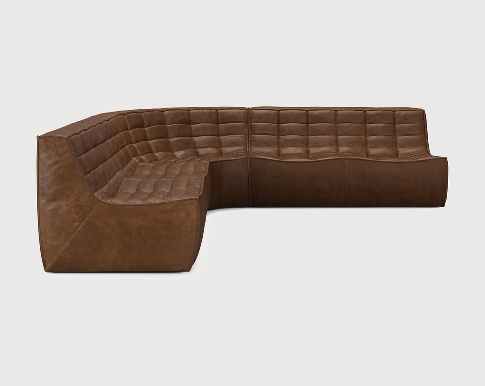 Ethnicraft Design. Jacques Deneef - Canapé modulaire N701 à partir de 8107 € Dimensions : l 260 x h 76 x p 260 cm Le canapé N701 offre un design chaleureux qui respire le confort et la détente. En combinant les modules aux dimensions variées, vous avez une infinité de possibilités dès lors qu'il s'agit de créer votre propre style d'intérieur. Conçu par Jacques Deneef, il est disponible en plusieurs couleurs et matières avec des options pré-configurées ou entièrement personnalisable. Composition canapé gauche : 2 modules 2 places + module d'angle arrondi à 90°. Des connecteurs pour relier les modules sont inclus. 100% cuir aniline. Des variations de couleur peuvent se produire. canapé modulaire