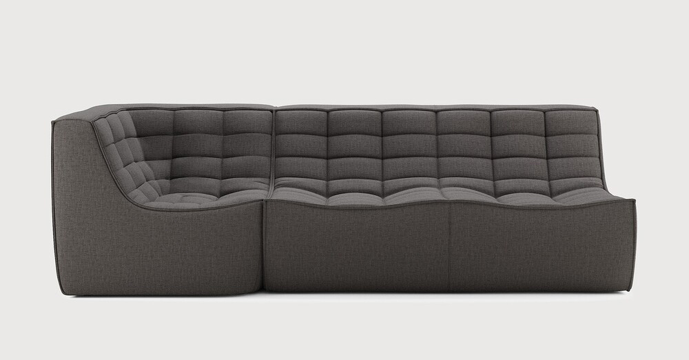 Ethnicraft Design. Jacques Deneef - Canapé modulaire N701, à partir de 2808 € Dimensions : l 231 x h 76 x p 91 cm Ce canapé N701 offre un design chaleureux qui respire le confort et la détente. En combinant les modules aux dimensions variées, vous avez une infinité de possibilités dès lors qu'il s'agit de créer votre propre style d'intérieur. Conçu par Jacques Deneef, il est disponible en plusieurs couleurs et matières avec des options pré-configurées ou entièrement personnalisable. Composition canapé gauche : module 2 places + module d'angle carré à 90°. Des connecteurs inclus pour relier les modules du canapé. canapé modulaire