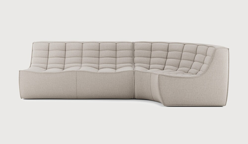 Ethnicraft Design. Jacques Deneef - Canapé modulaire N701, à partir de 2958 € Dimensions : l 260 x h 76 x p 120 cm Ce canapé N701 offre un design chaleureux qui respire le confort et la détente. En combinant les modules aux dimensions variées, vous avez une infinité de possibilités dès lors qu'il s'agit de créer votre propre style d'intérieur. Conçu par Jacques Deneef, il est disponible en plusieurs couleurs et matières avec des options pré-configurées ou entièrement personnalisable. Composition canapé droit : module d'angle arrondi à 90° + module 2 places. Des connecteurs inclus pour relier les modules du canapé. canapé modulaire