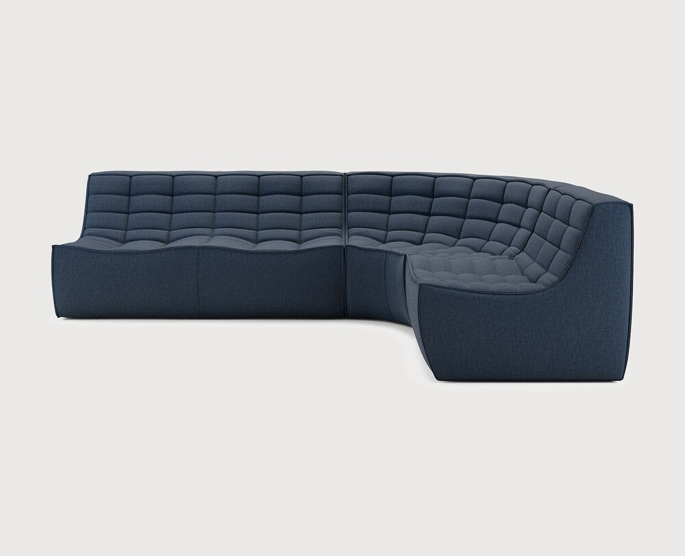 Ethnicraft Design. Jacques Deneef - Canapé modulaire N701 à partir de 4627 € Dimensions : l 260 x h 76 x p 200 cm Le canapé N701 offre un design chaleureux qui respire le confort et la détente. En combinant les modules aux dimensions variées, vous avez une infinité de possibilités dès lors qu'il s'agit de créer votre propre style d'intérieur. Conçu par Jacques Deneef, il est disponible en plusieurs couleurs et matières avec des options pré-configurées ou entièrement personnalisable. Composition canapé droit : module 3 places + module d'angle arrondi à 90° + module 2 places. Des connecteurs inclus pour relier les modules du canapé. Tissu réalisé à partir de coton recyclé avec des fibres supplémentaires pour des performances techniques. canapé modulaire