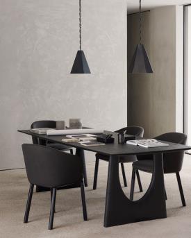 Ethnicraft Design. Studio Segers - Chaise Unda à partir de 629 € Dimensions : l 61 x h 81 x p 58 cm Profitez à table d'un confort sans précédent grâce à l'Unda. Caractérisée par l'association de matériaux, des lignes fluides et des passepoils façonnés dessinent les contours de la coque rembourrée. Conçue par le Studio Segers, réputé pour son approche franche et épurée, chaque détail, jusqu'aux pieds à la forme unique, témoigne d'une grande sophistication. Pieds en chêne verni noir et mousse haute densité avec revêtement couleur Charcoal. chaise