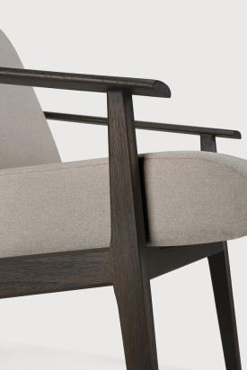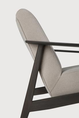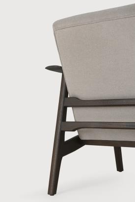 Fabriqué en teck teinté brun foncé avec une finition vernie et une mousse haute densité avec un revêtement en tissu écologique couleur Warm Ash.