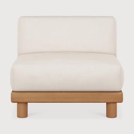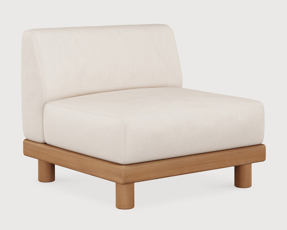 Ethnicraft Design. Jacques Deneef - Canapé de jardin modulaire Monocle à partir de 1378 € Dimensions : l 83 x h 72 x p 83 cm Combinant élégance et lignes épurées dans une silhouette décontractée, le canapé Monocle est raffiné, agréable et bien ancré au sol. Ses coussins moelleux vous permettent de profiter du confort de l'intérieur à l'extérieur, tandis que sa base en bois massif l'ancre bien au sol avec chaleur et équilibre. Faites votre choix parmi les options préconfigurées ou personnalisez votre installation et créez un canapé aussi unique que votre espace. Les cadres et les coussins peuvent être commandés ensemble ou séparément. Clips inclus pour relier les différents modules du canapé entre eux. Pour garantir la beauté naturelle du bois, ce modèle en teck n’a reçu aucune finition ni aucun traitement de protection. Pour plus d’informations, veuillez consulter nos consignes spécifiques pour l’entretien du mobilier de jardin. Fabriqués en 100% teck massif / Tissu 100% polyprop / Mousse à séchage rapide. canapé modulaire extérieur outdoor