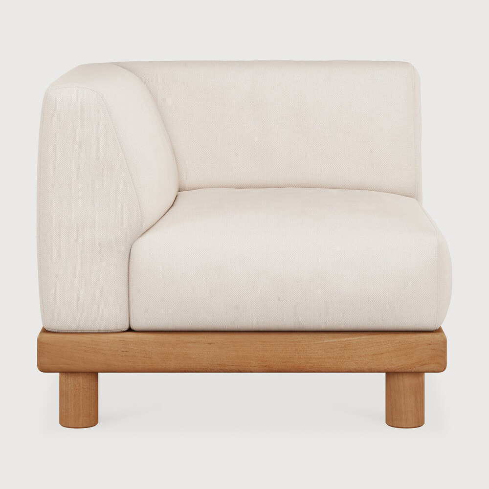 Ethnicraft Design. Jacques Deneef - Canapé de jardin modulaire Monocle à partir de 1728 € Dimensions : l 83 x h 72 x p 83 cm Combinant élégance et lignes épurées dans une silhouette décontractée, le canapé Monocle est raffiné, agréable et bien ancré au sol. Ses coussins moelleux vous permettent de profiter du confort de l'intérieur à l'extérieur, tandis que sa base en bois massif l'ancre bien au sol avec chaleur et équilibre. Faites votre choix parmi les options préconfigurées ou personnalisez votre installation et créez un canapé aussi unique que votre espace. Les cadres et les coussins peuvent être commandés ensemble ou séparément. Clips inclus pour relier les différents modules du canapé entre eux. Pour garantir la beauté naturelle du bois, ce modèle en teck n’a reçu aucune finition ni aucun traitement de protection. Pour plus d’informations, veuillez consulter nos consignes spécifiques pour l’entretien du mobilier de jardin. Fabriqués en 100% teck massif / Tissu 100% polyprop / Mousse à séchage rapide. canapé modulaire extérieur outdoor