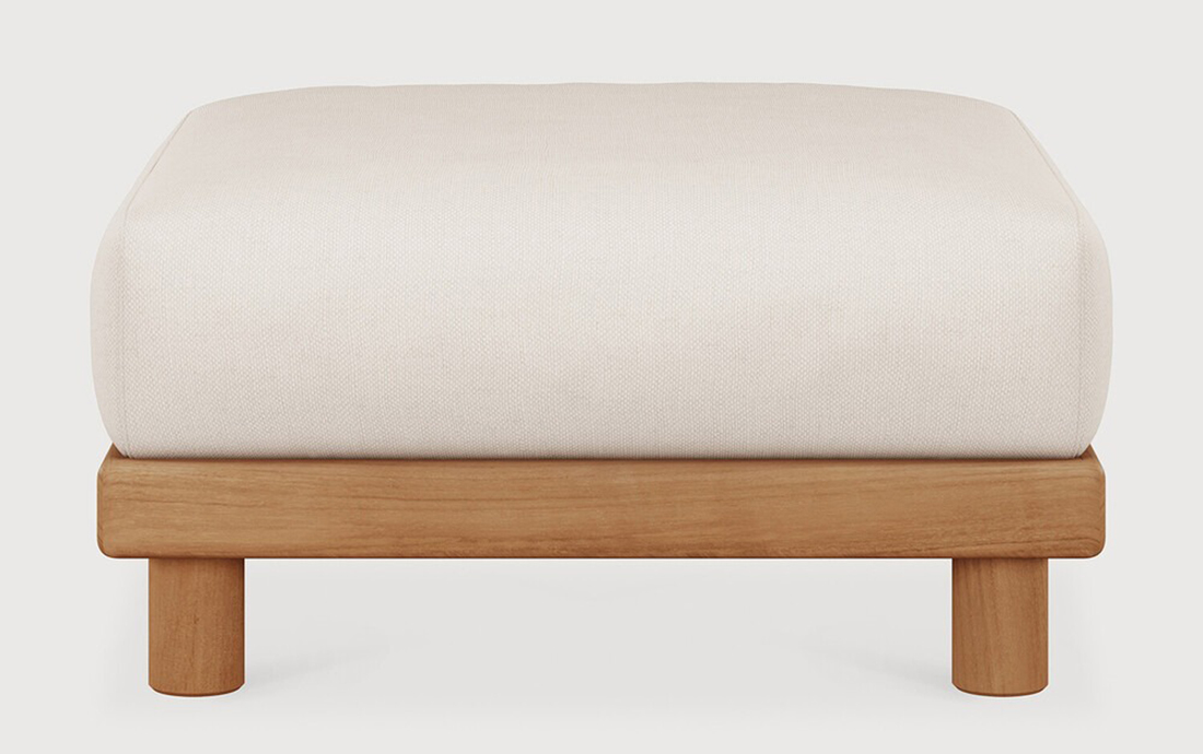 Ethnicraft Design. Jacques Deneef - Repose-pieds de jardin Monocle à partir de 798 € Dimensions : l 83 x h 40 x p 83 cm Combinant élégance et lignes épurées dans une silhouette décontractée, le canapé Monocle est raffiné, agréable et bien ancré au sol. Ses coussins moelleux vous permettent de profiter du confort de l'intérieur à l'extérieur, tandis que sa base en bois massif l'ancre bien au sol avec chaleur et équilibre. Faites votre choix parmi les options préconfigurées ou personnalisez votre installation et créez un canapé aussi unique que votre espace. Les cadres et les coussins peuvent être commandés ensemble ou séparément. Clips inclus pour relier les différents modules du canapé entre eux. Pour garantir la beauté naturelle du bois, ce modèle en teck n’a reçu aucune finition ni aucun traitement de protection. Pour plus d’informations, veuillez consulter nos consignes spécifiques pour l’entretien du mobilier de jardin. Fabriqués en 100% teck massif / Tissu 100% polyprop / Mousse à séchage rapide. repose-pied extérieur outdoor