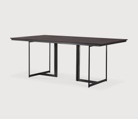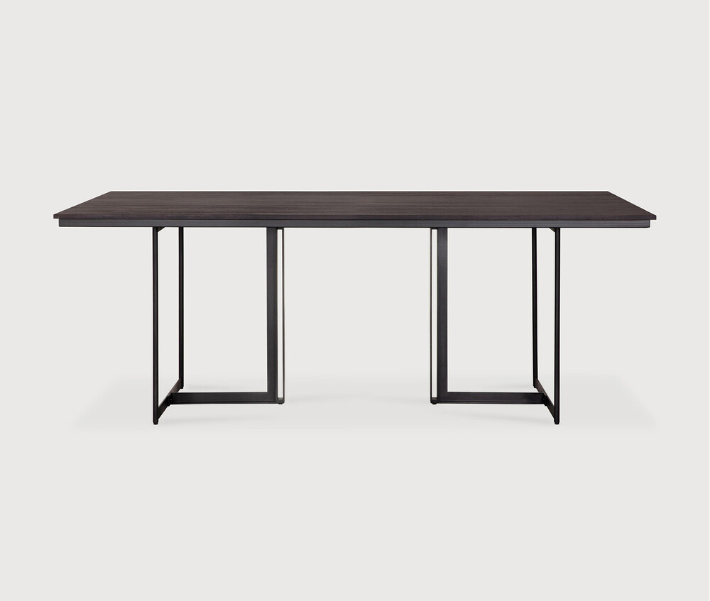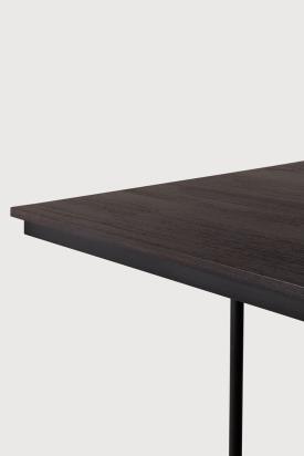 Ethnicraft Design. Alain van Havre - Table Tacet à partir de 2029 € Dimensions : l 200 x h 76 x p 100 cm La table à manger Tacet est élégamment conçue pour le travail, le plaisir ou simplement pour le repos, comme son nom le suggère. Ce meuble associe un plateau en teck verni durable à des pieds élégants en métal noir qui maximisent le nombre de places assises. La Tacet se caractérise par sa légèreté, ce qui en fait un ajout remarquable à tout espace dinatoire. Un autre chef-d'œuvre signé Alain van Havre. Fabriquée en teck massif certifié FSC marron foncé et brossé, avec une finition vernie, sur un piètement en métal noir.
