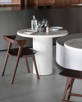 Ethnicraft Table Elements à partir de 2019 € Dimensions : Ø 150 x h 76 cm La simplicité élégante constitue la base de la collection Elements. Entre les mains expertes de nos artisans, les formes douces et harmonieuses se fondent, tout en matérialité et caractère. Chaque création se distingue par une subtile finition haute-performance, faite de terre et de roche. Avec son design décoratif et durable, la collection Elements convient à tous types d'intérieurs. Le microciment est un enduit à base de ciment, composé d'agrégats et de minéraux tels que le sable, la chaux et l'eau. Ce matériau est assemblé avec soin afin de créer une finition unique, laquelle est scellée au moyen d'un revêtement à base d'eau, qui offre une protection optimale contre les liquides et vous permet de l'utiliser au quotidien. table de repas