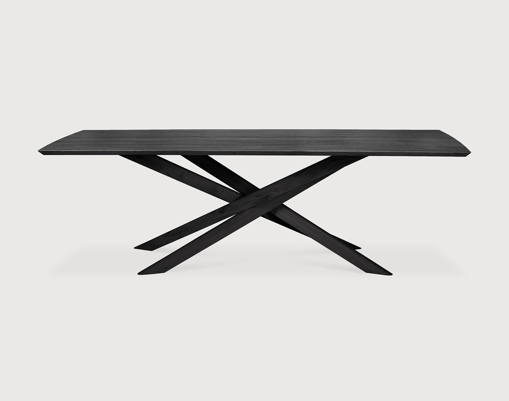 Le caractère sculptural de la table Mikado est le fruit d'une recherche pour trouver l'équilibre entre fonctionnalité et stabilité. Les pieds s'entrecroisent comme un puzzle bien construit, sur lequel s'appuie un plateau rectangulaire en bois massif.