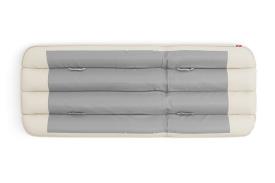 Le Sunbun est un lit de repos spacieux et ultra-confortable où le design nostalgique rencontre le confort contemporain. Son esthétique fait référence aux formes rondes et douces des inflatables des années 70 et 80, mais réinventées avec des matériaux de haute qualité et des détails bien pensés. Le cadre en aluminium de 85 cm de large est résistant aux UV et aux intempéries, facile à assembler et réglable en quatre positions. Le Sunbun Cushion est fabriqué en tissu oléfine avec un revêtement respirant, une face inférieure en mesh aéré et un rembourrage en mousse confortable qui garde une belle tenue. Grâce aux anses pratiques, tu le positionnes facilement. Tu reçois aussi un coussin repose-tête et une petite pochette de rangement. Que tu prennes le soleil, que tu lises ou que tu te détendes simplement, le Sunbun trouve sa place partout dans ton espace extérieur et t’invite à profiter d’un vrai moment de lounge.