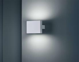 Applique à lumière directe/indirecte. Corps en aluminium extrudé peint. Filtres latéraux en fonte d'aluminium repris à 45° sur contrôle numérique pour un assemblage parfait avec le corps de la lampe. Diffuseurs en PMMA moulé par injection finition photogravée. Attache murale en PA66 moulé par injection. Alimentation multi-tension intégrée dans le corps de l'appareil.