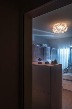 Un cœur chaud et lumineux, enveloppé d’un scintillement de sphères transparentes : c’est l’applique murale Caboche Plus un bijou de design intégré à l’architecture. Une présence élégante offrant une lumière rasante sur le mur.