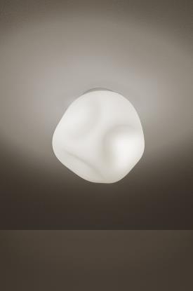 Réalisées en verre soufflé mat, appliques murales Hoba ont une forme asymétrique et irrégulière qui rappelle une météorite cristallisée au moment de son envol. Disponibles en différentes tailles, elles diffusent une lumière chaude et enveloppante.