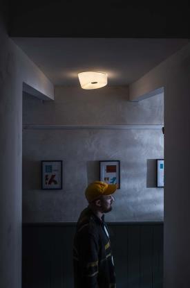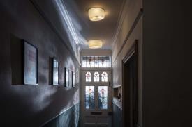 Dimensions : l 34 x h 34 x p 13/14 cm Matériau : Verre soufflé et métal verni lampe plafonnier