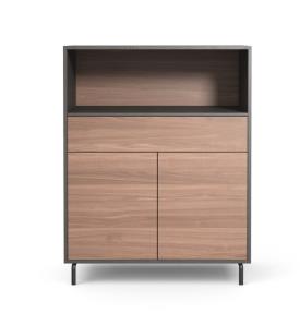 Bahut aux multiples personnalités, Evo contient, organise, peut servir de base solide. Le secret est dans sa structure, forte, élémentaire, versatile. Rempli d’éléments les plus divers, aux différentes fonctions – portes, tiroirs, compartiments ouverts – il découvre des vocations et des appendices même à l’extérieur de lui-même, en devenant le cœur opérationnel de la pièce.