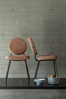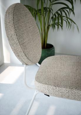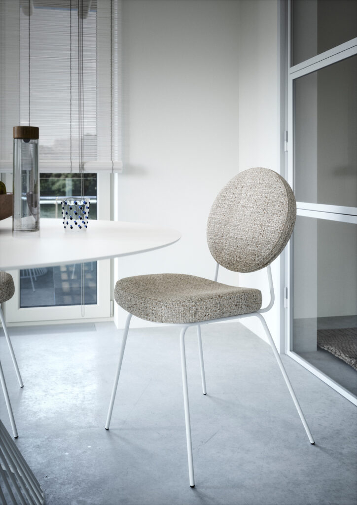 Chaise avec structure en métal, noire ou blanche, avec assise large et confortable. Dimensions : l 46 x h 90 x p 45 cm Possibilité de personnaliser le revêtement. chaise