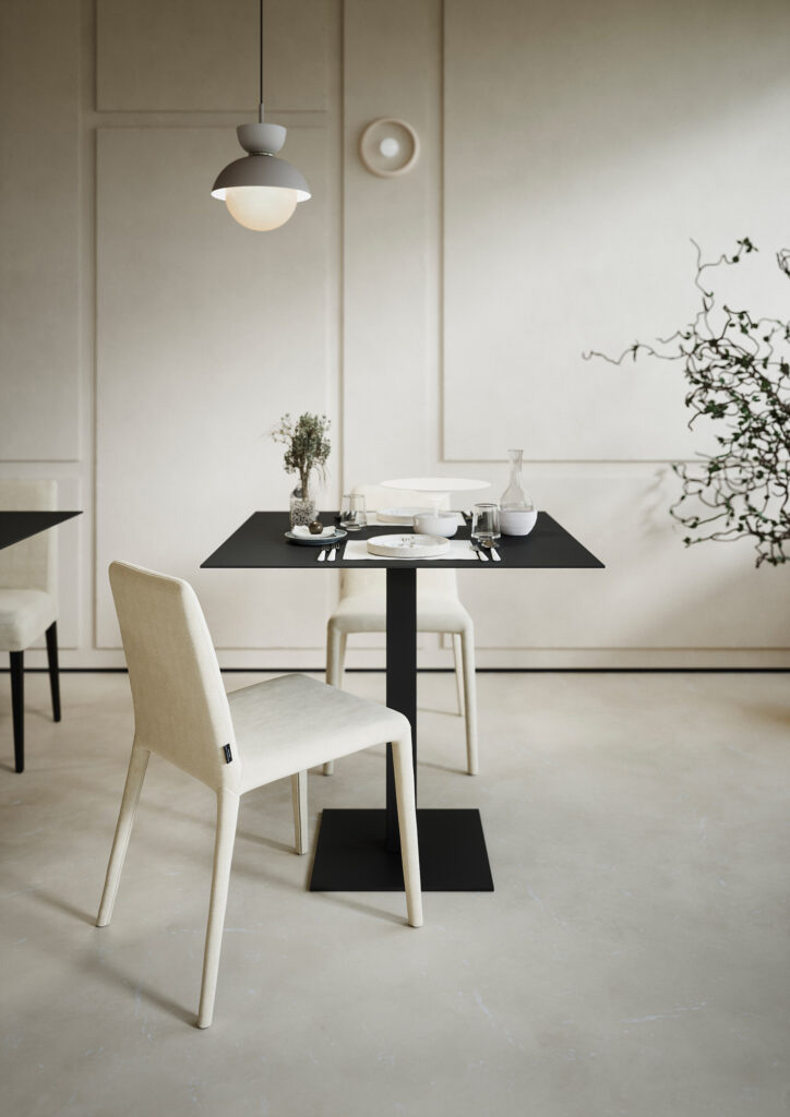 Coque en polyuréthane flexible, avec pieds en mousse et insert en métal. Dimensions : l 46 x h 84 x p 49 cm Housse entièrement déhoussable. chaise