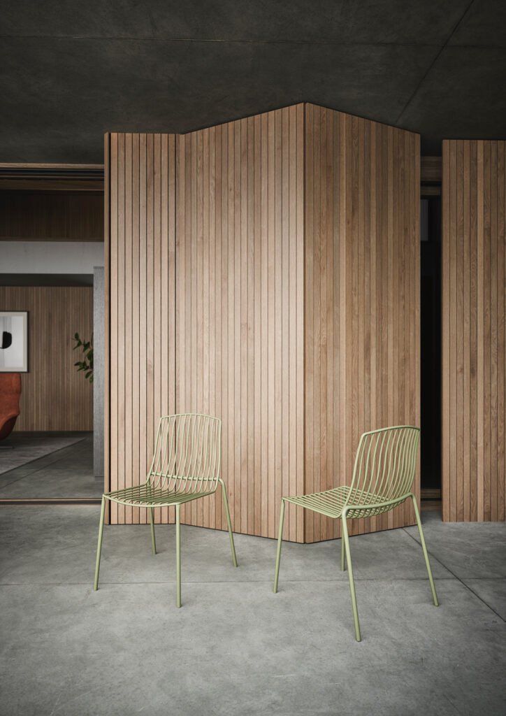 La chaise sont réalisés en métal tubulaire traité pour l'extérieur, peint en mat en six couleurs. Dimensions : l 53 x h 81 x p 56 cm Toutes les versions sont empilables. chaise