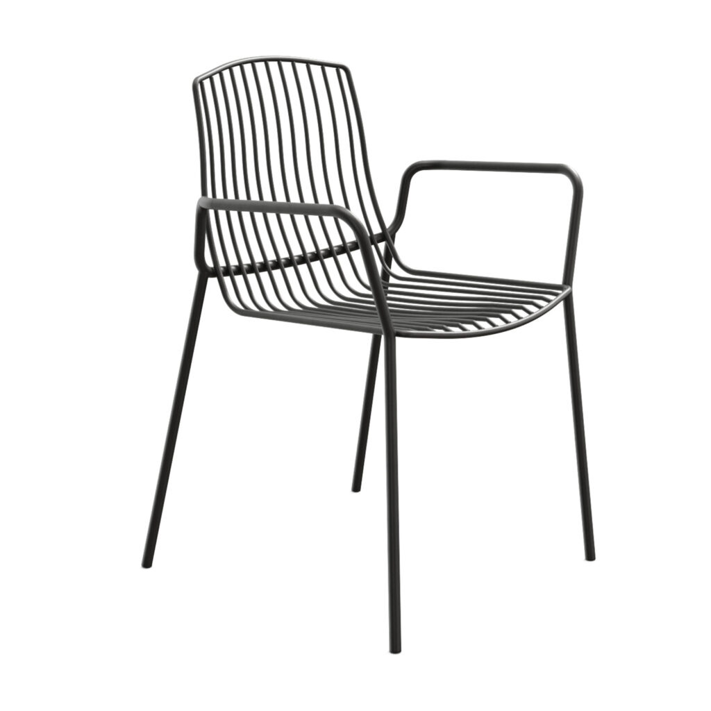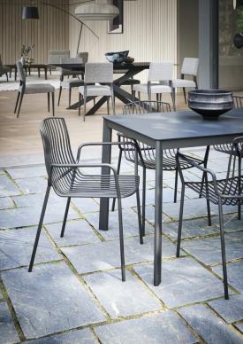 Le fauteuil sont réalisés en métal tubulaire traité pour l'extérieur, peint en mat en six couleurs. Dimensions : l 53 x h 81 x p 56 cm Toutes les versions sont empilables. fauteuil