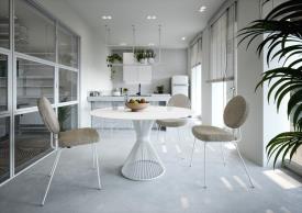 Harmonie surprenante, qui naît d’un contraste apparent de géométries. Dialectique pure et essentielle entre le haut et le bas, le dessus et le dessous, la terre et l’air. Dans l’ameublement, comme dans la nature, souvent les contraires s’attirent, cherchent et trouvent une synthèse parfaite et élégante. Et l’élément qui la rend possible est la connexion fondamentale entre les différentes surfaces.