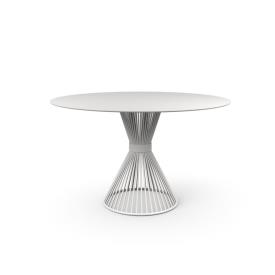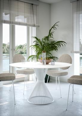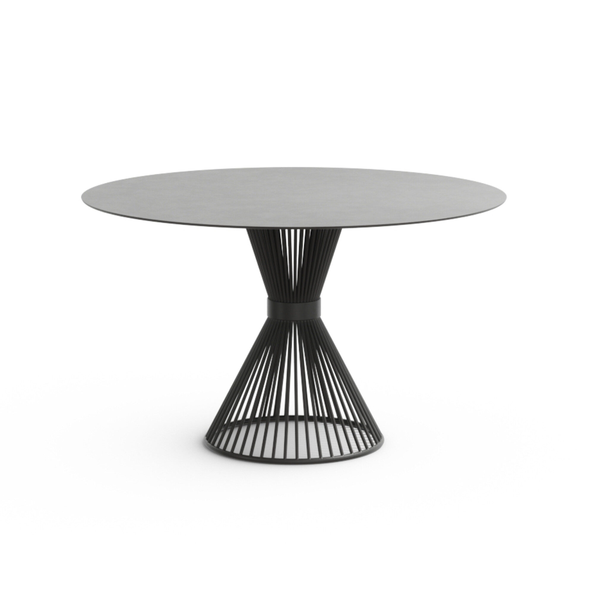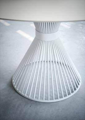 L'élément caractérisant la table Baobab réside dans l'important pied central en métal. Le plateau circulaire peut être en bois, fenix, Hpl ou céramique.