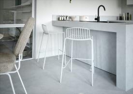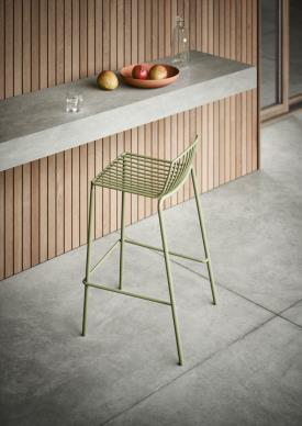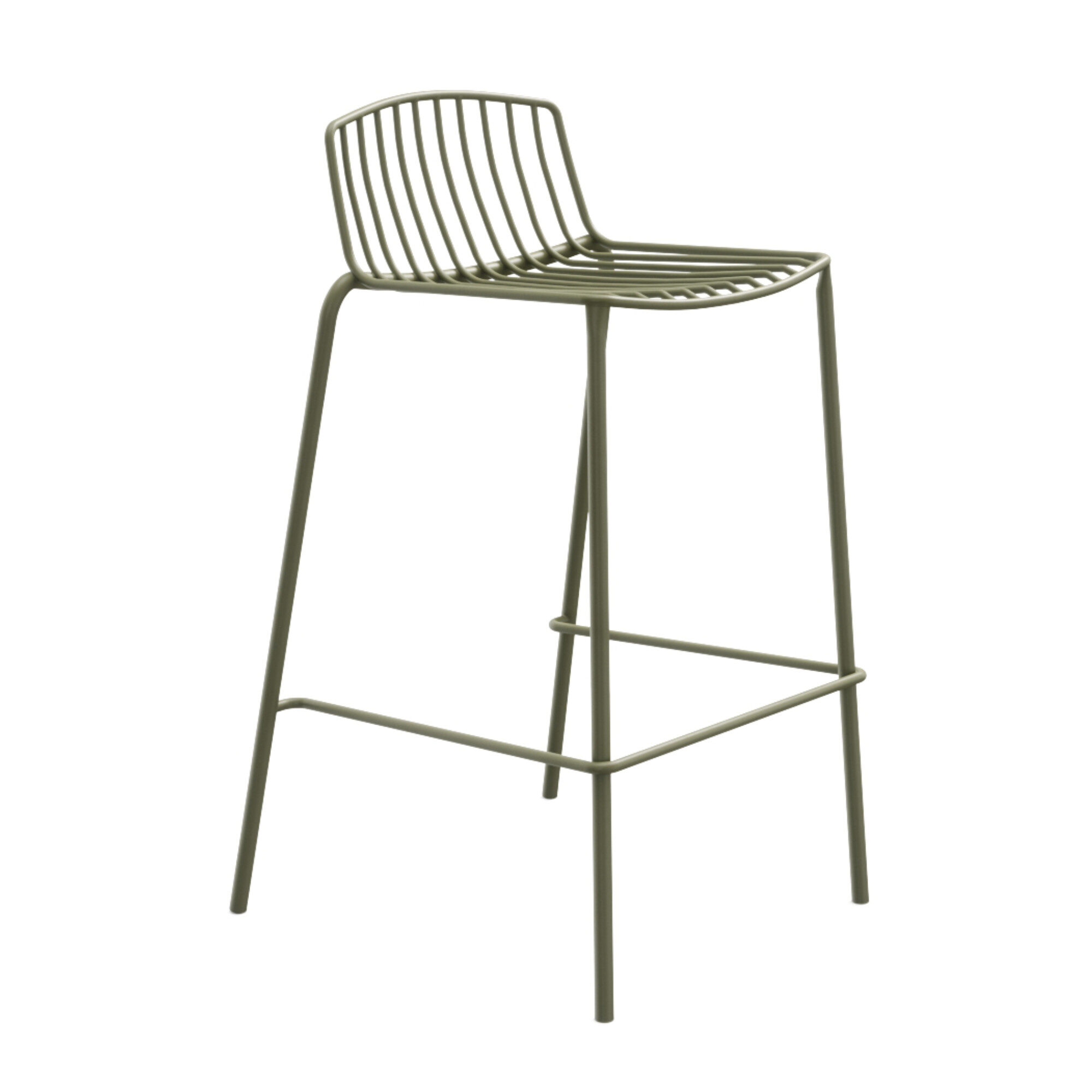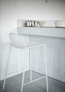 Dimensions : l 49 x h 80/90 x p 49 cm Le tabouret est réalisé en métal tubulaire traité pour l'extérieur, peint en mat en six couleurs. Toutes les versions sont empilables.