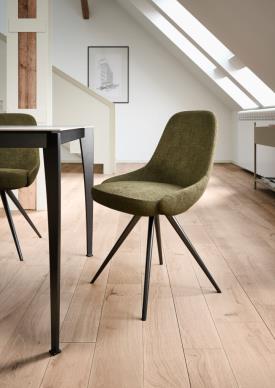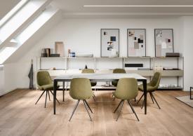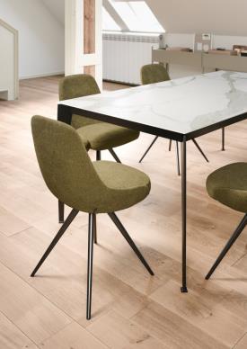 La simplicité de construction et l’essence des matériaux lui confèrent une touche Mad. Le léger arrondi des pieds interrompt la rigueur de la forme rectangulaire et rend la table harmonieuse et compacte.