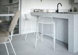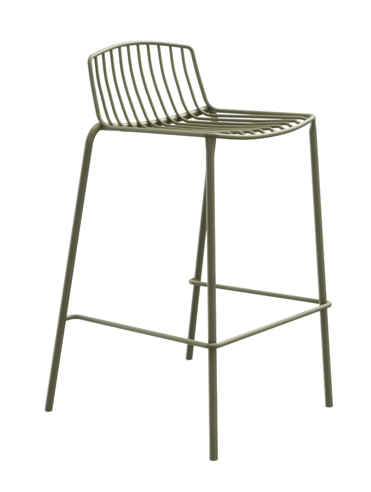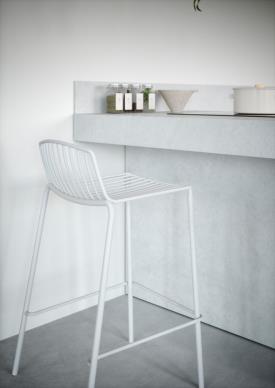 Dimensions : l 49 x h 80/90 x p 49 cm Le tabouret est réalisé en métal tubulaire traité pour l'extérieur, peint en mat en six couleurs. Toutes les versions sont empilables.