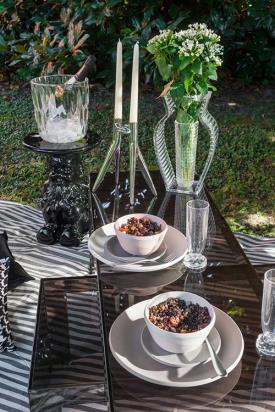 La collection d’accessoires de Table Trama signée Patricia Urquiola se compose d’un service d’assiettes complet s’inspirant des céramiques japonaises, aux textures sophistiquées et aux coloris naturels terre effet opaque. À l'instar des services en terre cuite des maisons de campagne, les assiettes sont rugueuses au toucher. Elles se distinguent également par un motif graphique qui définit avec élégance le minimalisme de la collection.