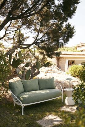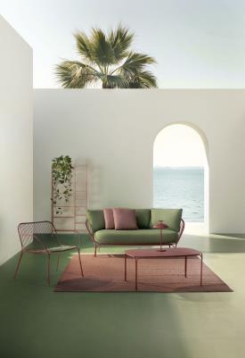 La famille HiRay de Ludovica Serafini + Roberto Palomba s’agrandit avec un nouveau projet : le canapé aux formes plus généreuses assorti de coussins plus épais qui rendent l’assise encore plus cosy et souple. La nouvelle version du canapé est conçue pour offrir une expérience plus lounge et confortable. Tout le souci du détail apporté à cette nouvelle version garantit un confort optimal, tant dans les environnements résidentiels que dans les espaces du segment Contract. Les textiles recherchés font de ce produit extrêmement particulier un meuble adapté à toutes les occasions en extérieur. Le canapé est disponible en blanc, noir, rouille et vert.